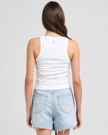 The Yeah The Girls Women's Scoop Neck Singlet in White is a fitted, stylish singlet featuring a bold front slogan print that reads "Yeah The Girls." With a minimal back print, it combines a fun, empowering message with a flattering scoop neck design. Made for those who love to stand out, this singlet is perfect for casual days or layering with your favourite pieces.