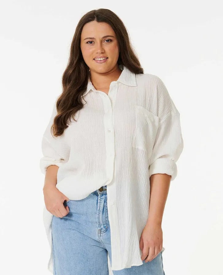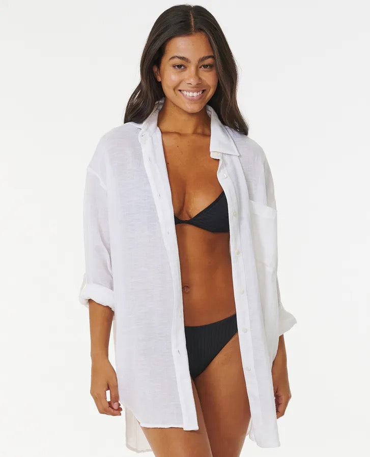 The Premium Linen Long Sleeve Button Through Shirt is a lightweight, breathable piece that’s perfect for those days when you want to stay cool while looking chic. Made from a blend of linen and viscose, this shirt has a natural, relaxed fit that’s perfect for beach days or casual nights out. The garment wash adds a lived-in feel that makes it ultra-comfortable, while the classic button-through design gives it that timeless look that never goes out of style. Whether you’re layering it over your swimsuit for a beachside brunch or pairing it with your favorite shorts, this shirt keeps you cool and stylish wherever you go.