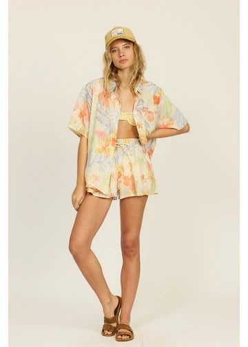 These playful shorts blend cotton and linen for breezy comfort, featuring an elastic waistband and handy side pockets for your essentials